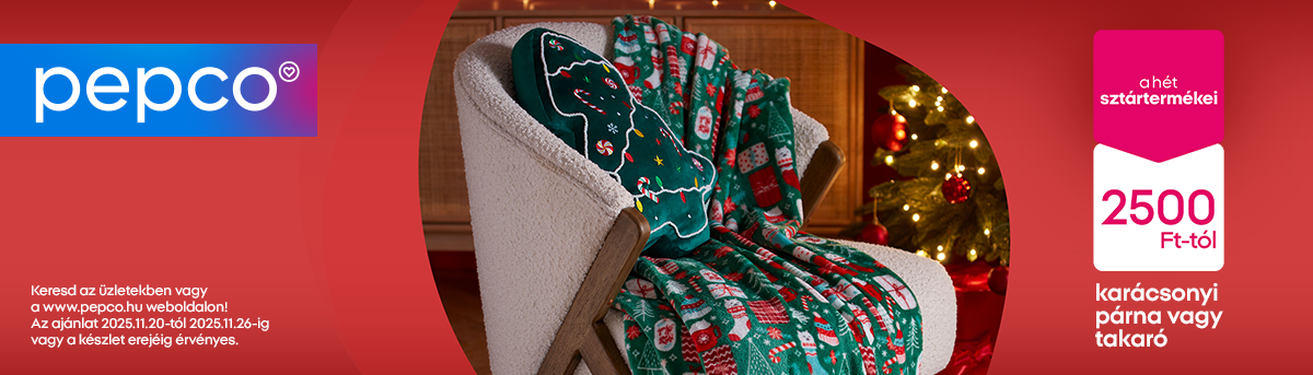 Nem kell karácsonyig várnod, hogy érezd a varázsát! Alkoss ünnepi hangulatot otthonodban egy kisebb vagyon elköltése nélkül. Egy puha takaró vagy egy imádnivaló párna remek választás egy nyugodt estéhez a családoddal, ünnepi hangulatban. Nézz be a Pepco üzleteibe és fedezd fel legújabb ajánlataikat!